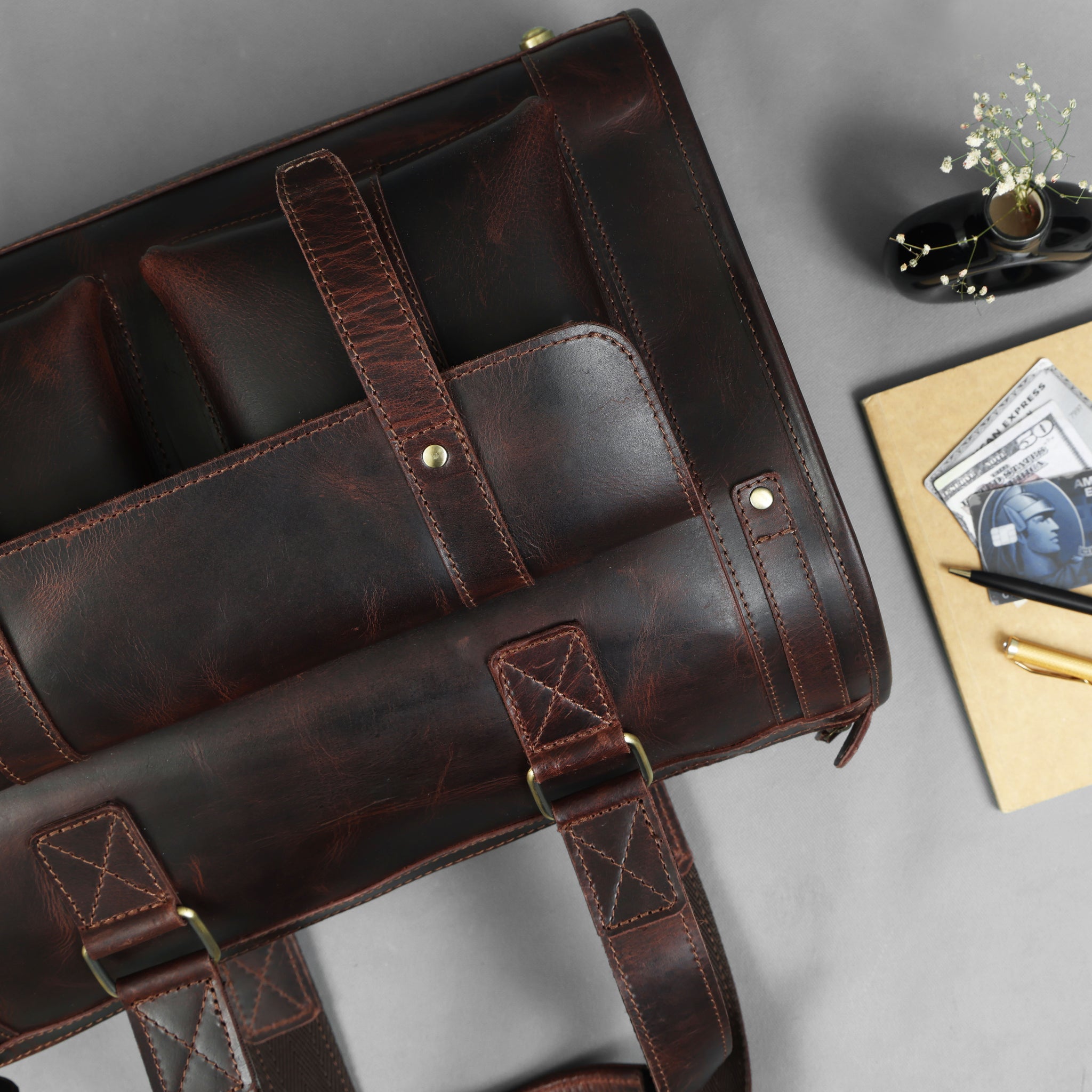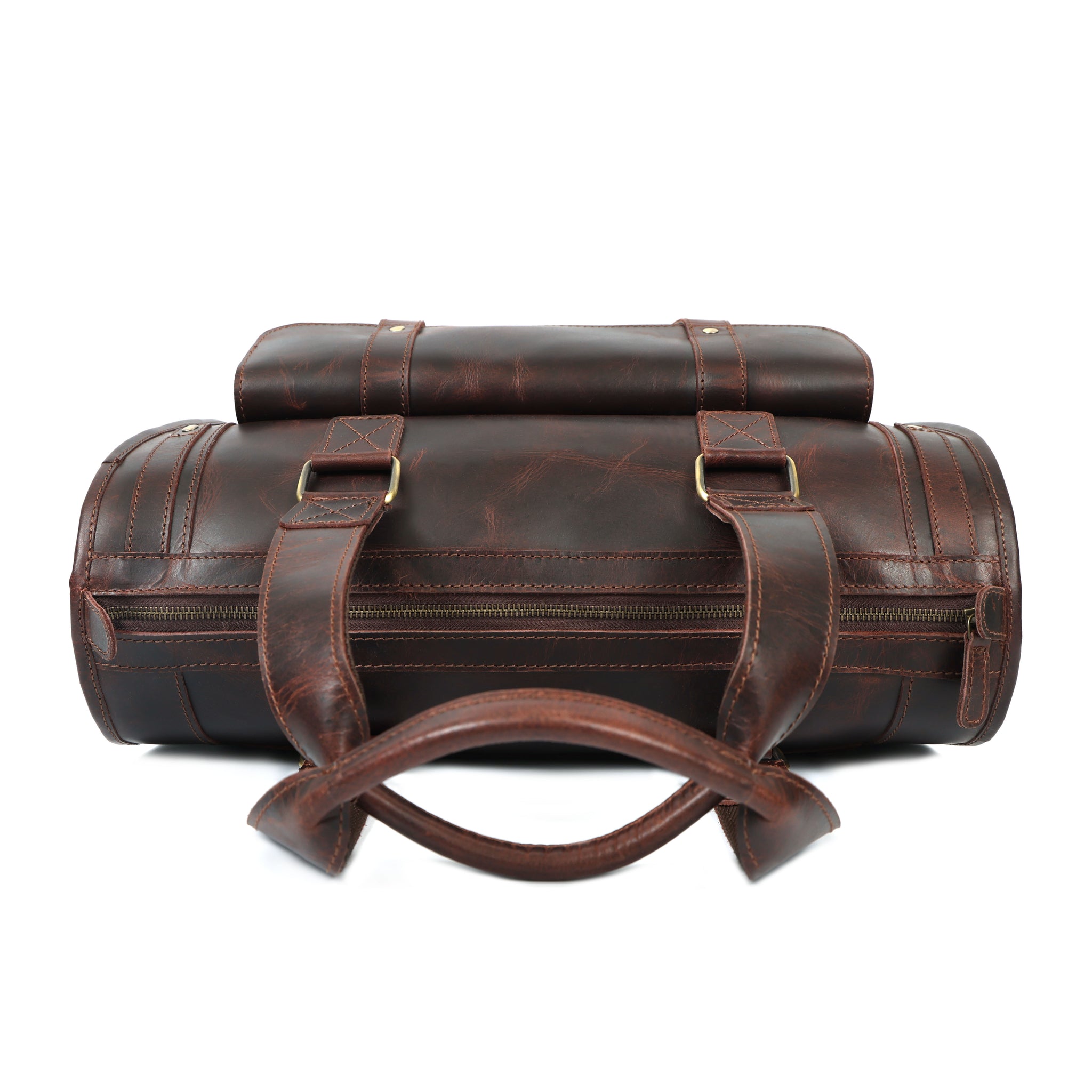 - Leather top handles