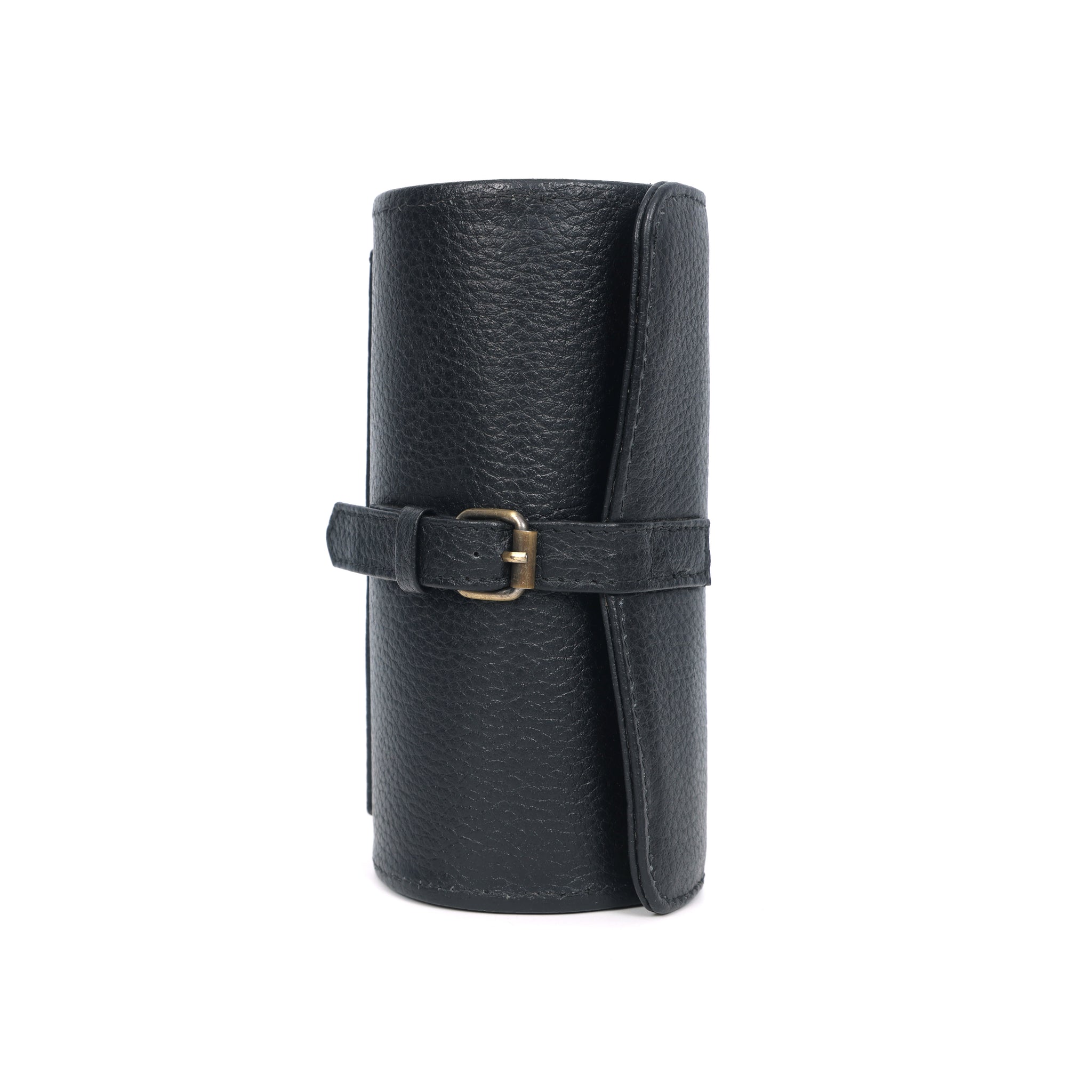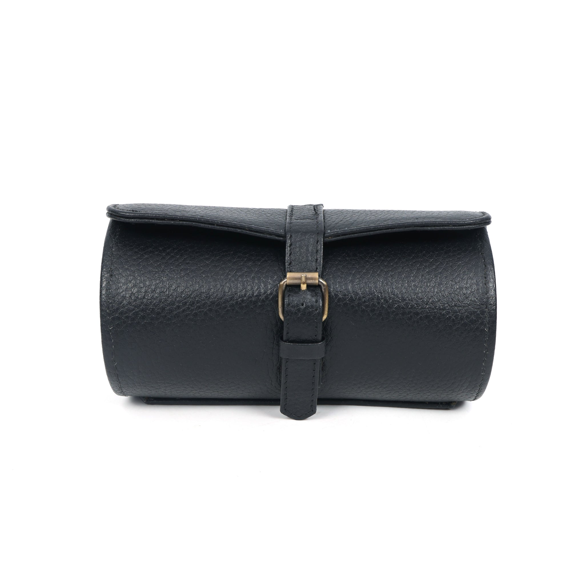 Safeguard your timepiece collection with this elegant black buffalo leather watch roll. Thoughtfully designed to accommodate three watches, it provides secure storage and easy access whether you're at home or on the move. Crafted from resilient black buffalo leather, this roll protects your watches from scratches and damage. Ideal for the watch enthusiast who refuses to compromise on quality, it's a gift that celebrates both the art of horology and the beauty of functional design.