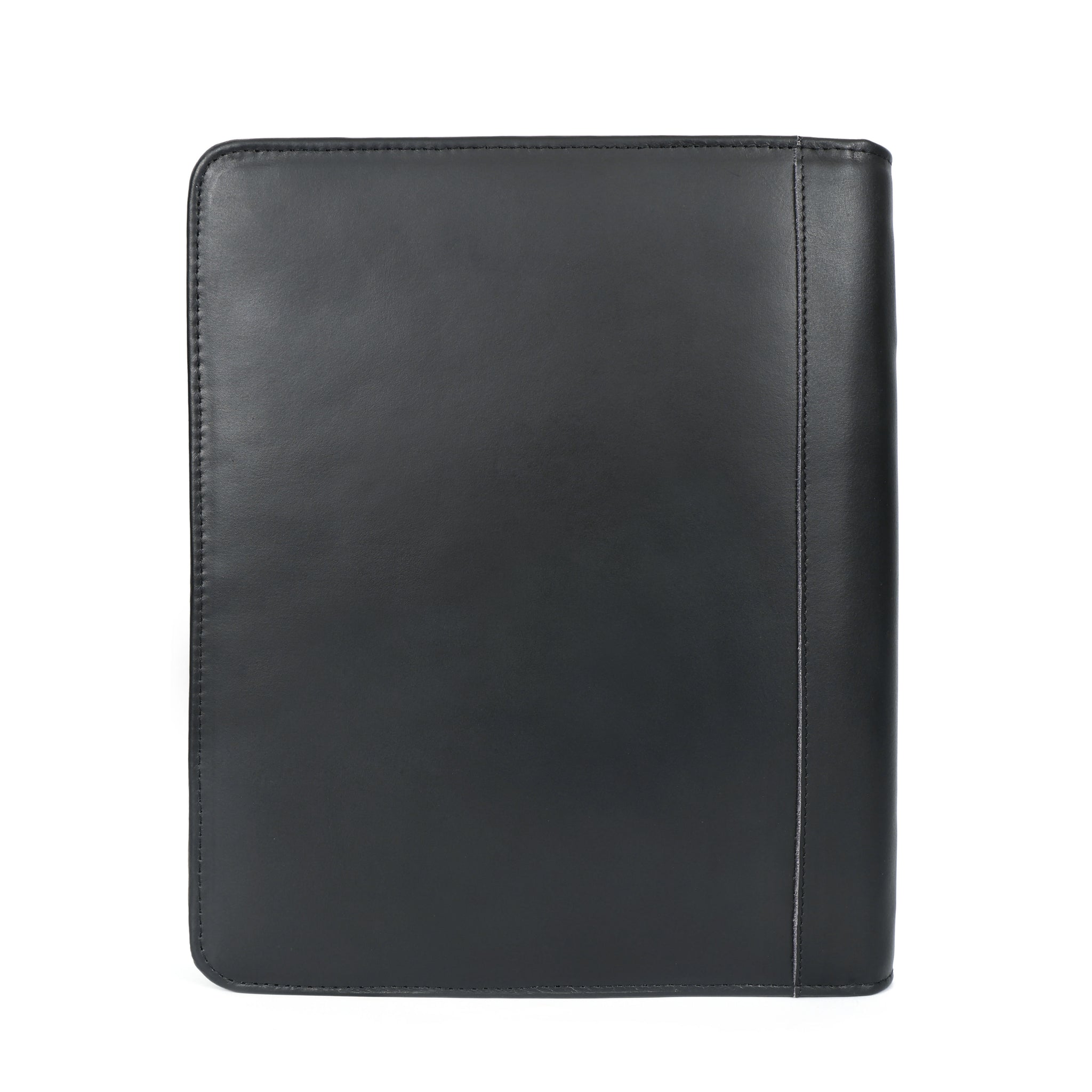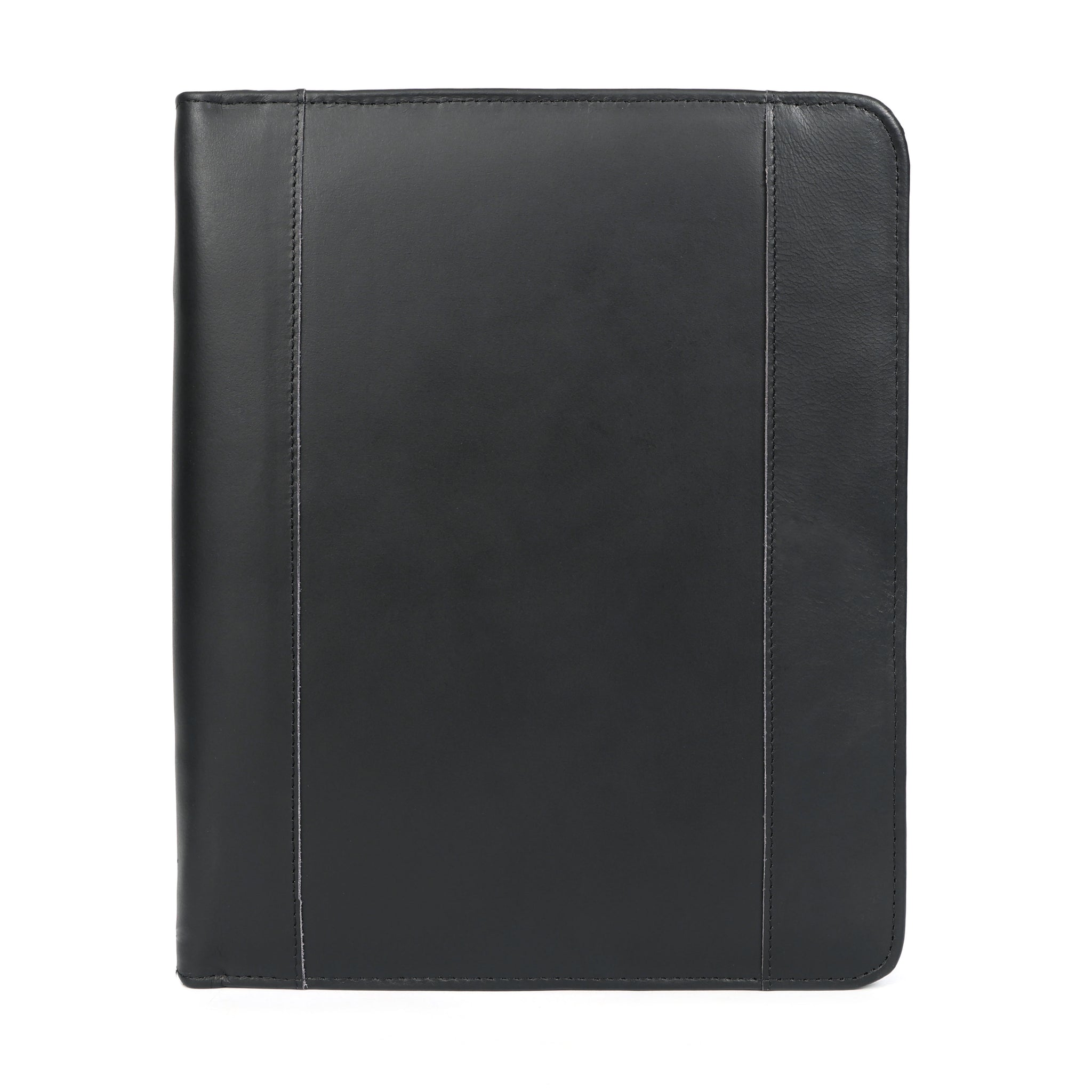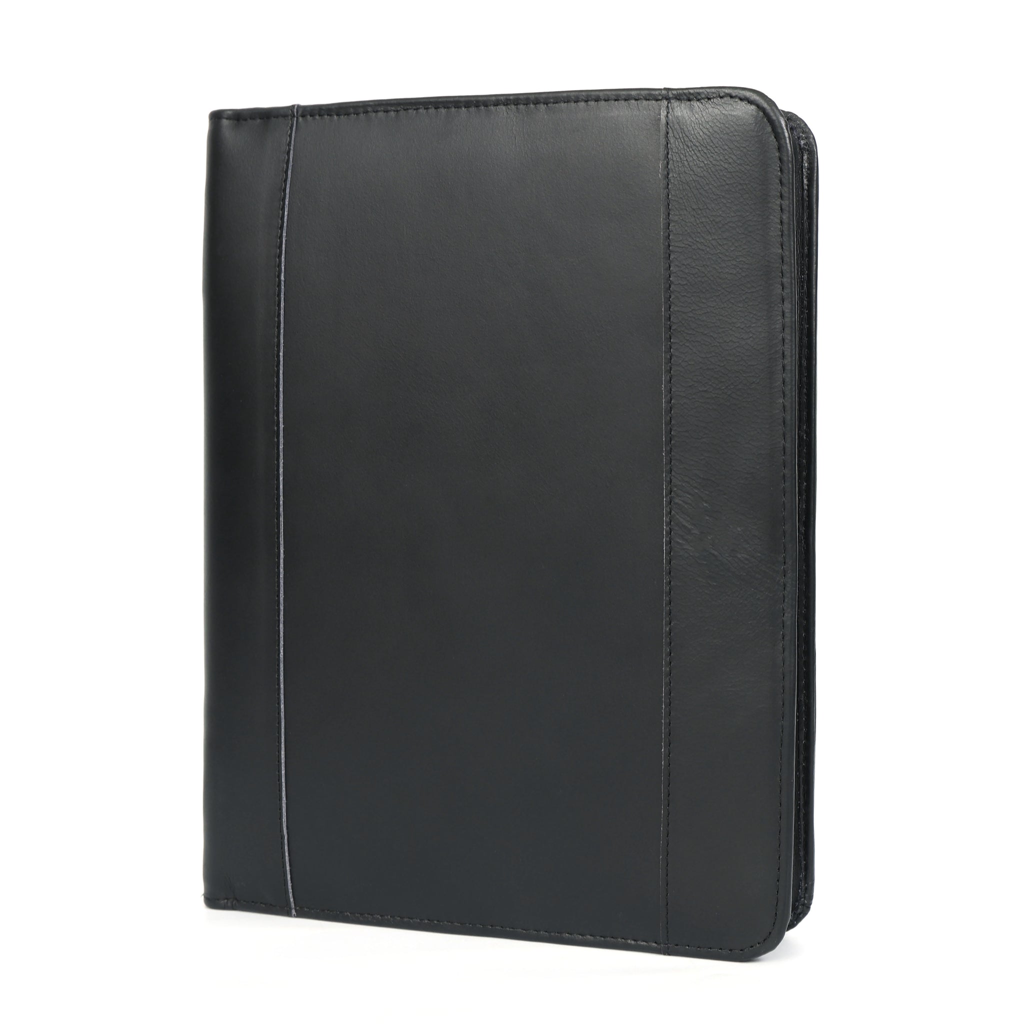 Handmade from high-quality full grain black leather, this zippered padfolio merges long-lasting strength with refined elegance. The secure zipper keeps your important documents safe, while its roomy interior features dedicated sections for notes and business cards. Ideal for professionals who appreciate both practicality and style, this padfolio helps you present yourself with confidence wherever your day takes you.