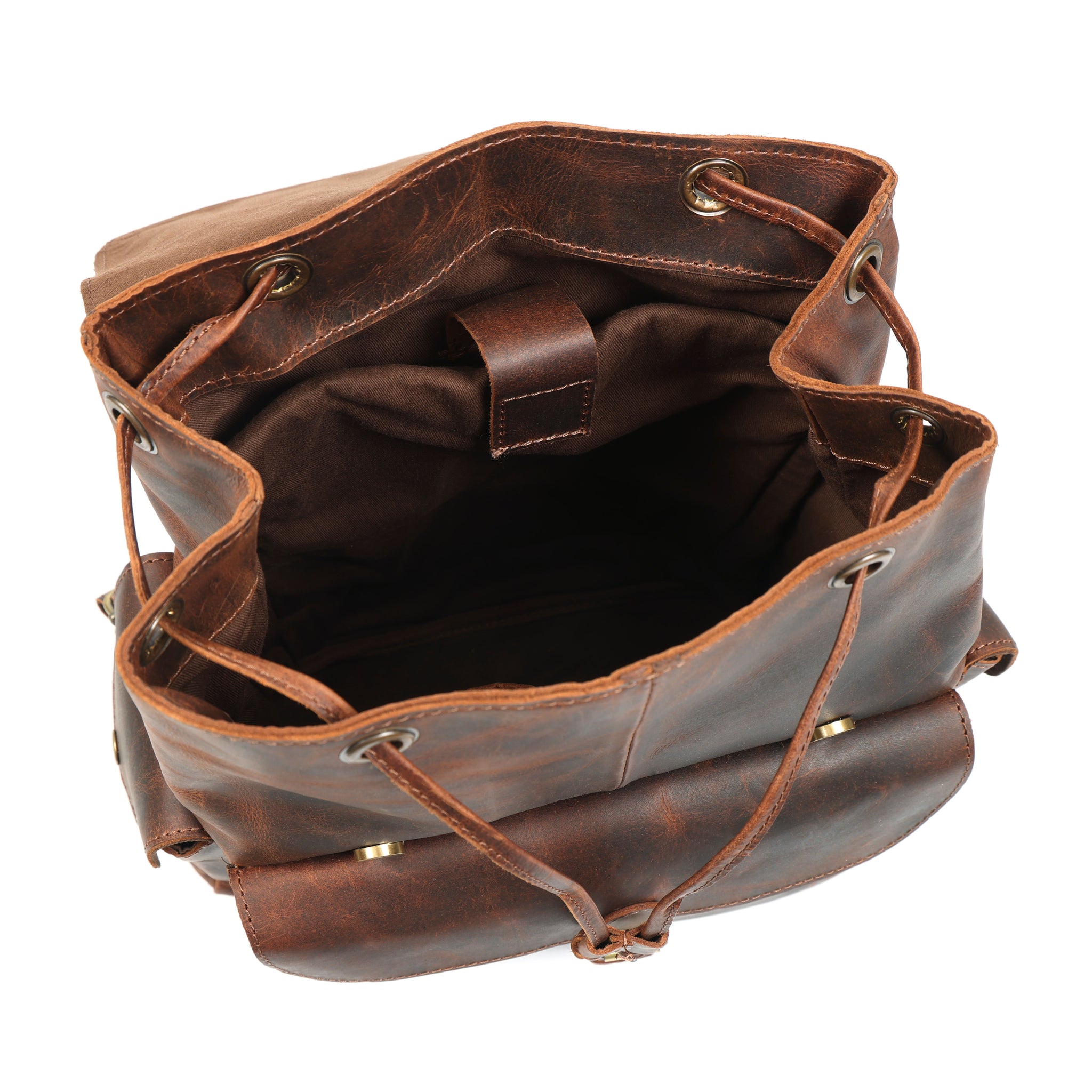 Discover the perfect balance of style and practicality with the Emerson Buffalo Leather Backpack, crafted from premium Buffalo leather for both men and women. Designed for comfort, it includes adjustable shoulder straps and a convenient top handle. Enjoy quick access to the roomy main compartment through magnetic closures and a drawstring, while side pockets secured with buttons keep smaller items within reach. Durable brass hardware enhances longevity, and the canvas lining with interior pockets helps keep your belongings neatly organized. This backpack stands out as a reliable and stylish everyday companion.