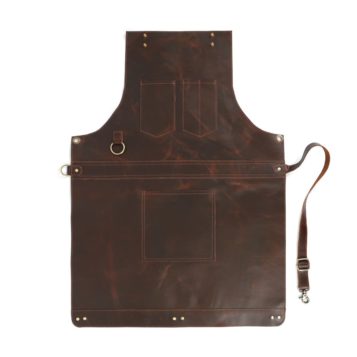 Experience the perfect blend of protection and heritage with this handmade buffalo leather apron. Engineered from premium full-grain leather, it withstands the demands of professional kitchens, craft studios, and workshops alike. The robust construction shields you from heat, spills, and wear while maintaining a refined aesthetic that commands respect. As you work, the leather naturally ages into a unique patina. From chefs to artisans, this apron isn't just functional gear; it's an investment in durability that honors your commitment to excellence.
